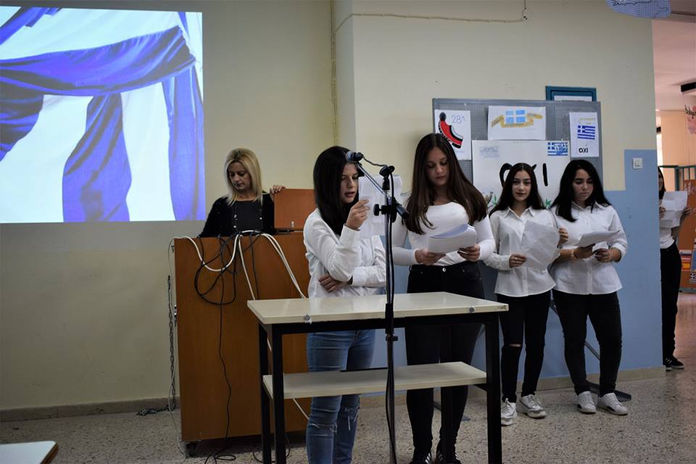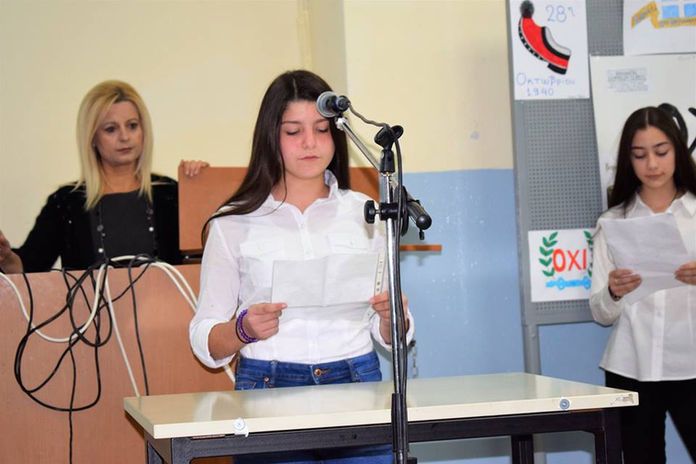 Η σχολική γιορτή για την επέτειο της 28ης Οκτωβρίου 1940 φέτος διοργανώθηκε από τους μαθητές της Γ΄τάξης του Γυμνασίου μας. Με ποιήματα, αποσπάσματα από πεζογραφήματα, τραγούδια, θεατρικά δρώμενα τόνισαν το θάρρος, την αποφασιστικότητα, την αγωνιστικότητα, την αντίσταση του Ελληνικού λαού στις κρίσιμες στιγμές του Ελληνοϊταλικού πολέμου και της Γερμανικής Κατοχής, αλλά και τη σκληρότητα και τη βαρβαρότητα του πολέμου.