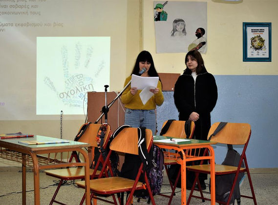 Με αφορμή την Πανελλήνια Ημέρα κατά της σχολικής Βίας και με σύνθημα «τα παιδιά έχουν το δικαίωμα να ζουν σε ένα δημοκρατικό σχολείο με ειρηνικό και ασφαλές περιβάλλον και να μην αισθάνονται κανενός είδους απειλή»