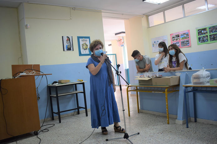 Προηγουμένως οι καθηγητές/τριες συζήτησαν και εξήγησαν στα παιδιά τους νέους κανόνες, κάτω από τους οποίους θα γίνονται πλέον τα μαθήματα και τα μέτρα προστασίας και υγιεινής που θα πρέπει να τηρούνται, και διένειμαν τα βιβλία.