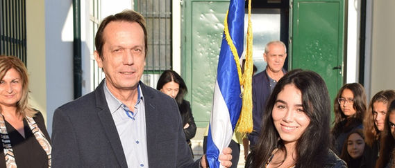 Παράδοση σημαίας για το σχολικό έτος 2019-20 στη σημαιοφόρο του σχολείου μας, Βουδουρίδου Σταυρούλα. .