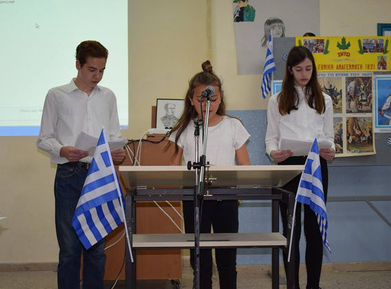 Γιορτή για την επέτειο της 25ης Μαρτίου πραγματοποίησαν οι μαθητές και οι μαθήτριες του Γυμνασίου μας στην αίθουσα του "Ορφέα" Νέου Σκοπού.