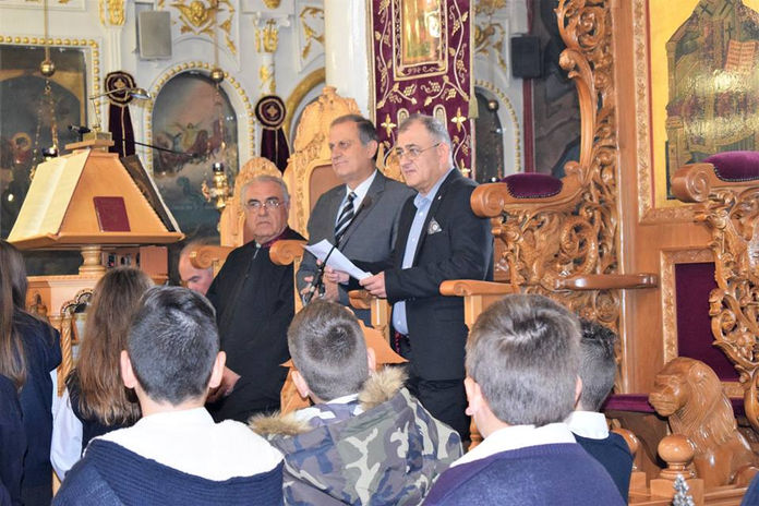 Η φιλόλογος, κ. Κωνσταντινιά Παχούμη, στην ομιλία της για τους Τρεις Ιεράρχες αναφέρθηκε στη ζωή τους, στο έργο τους και στην αξία της προσφοράς τους στην Παιδεία.